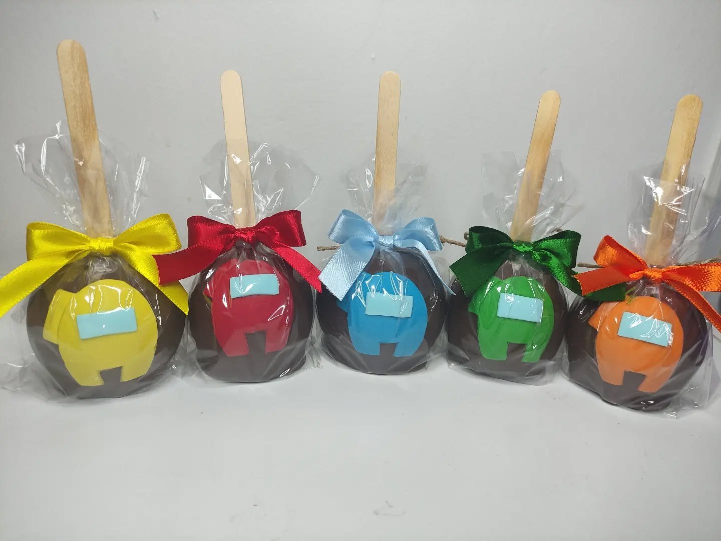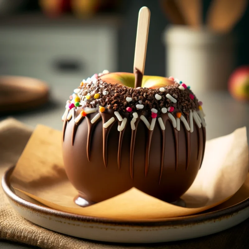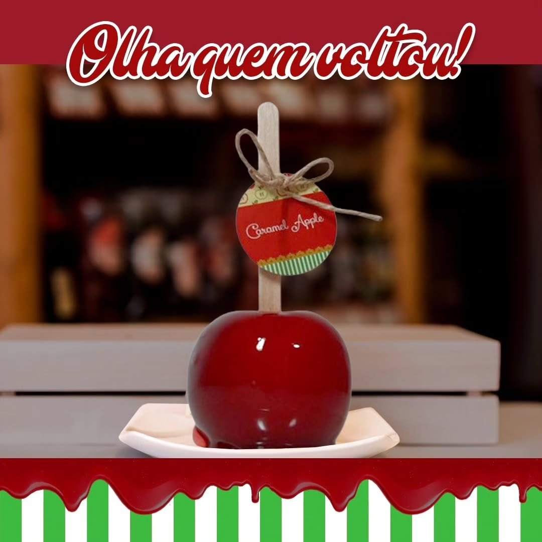 Feita com maçãs inteiras cobertas por uma cobertura de chocolate ao leite, branco ou meio amargo.
